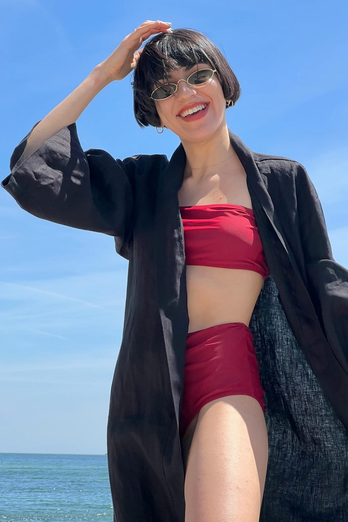 Matching sets are always a winning choice, and if you want an easy way to rock suede, coordinating pieces are the way to go. Sasha looks absolutely stunning in a suede jacket paired with a matching mini skirt, crafting the ideal fall outfit. To keep things seasonally appropriate, she completes her look with sheer tights and stylish chocolate heels, creating an ensemble that’s sure to turn heads.